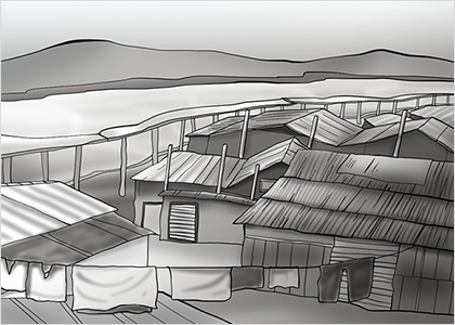 어느 판잣집 부엌에서 뭔가를 찾는 듯